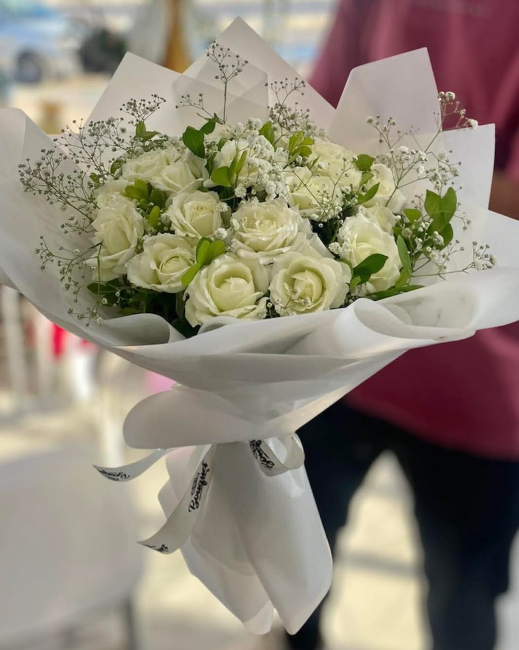 💐 Bouquet rose blanche – Paix, amour et lumière.