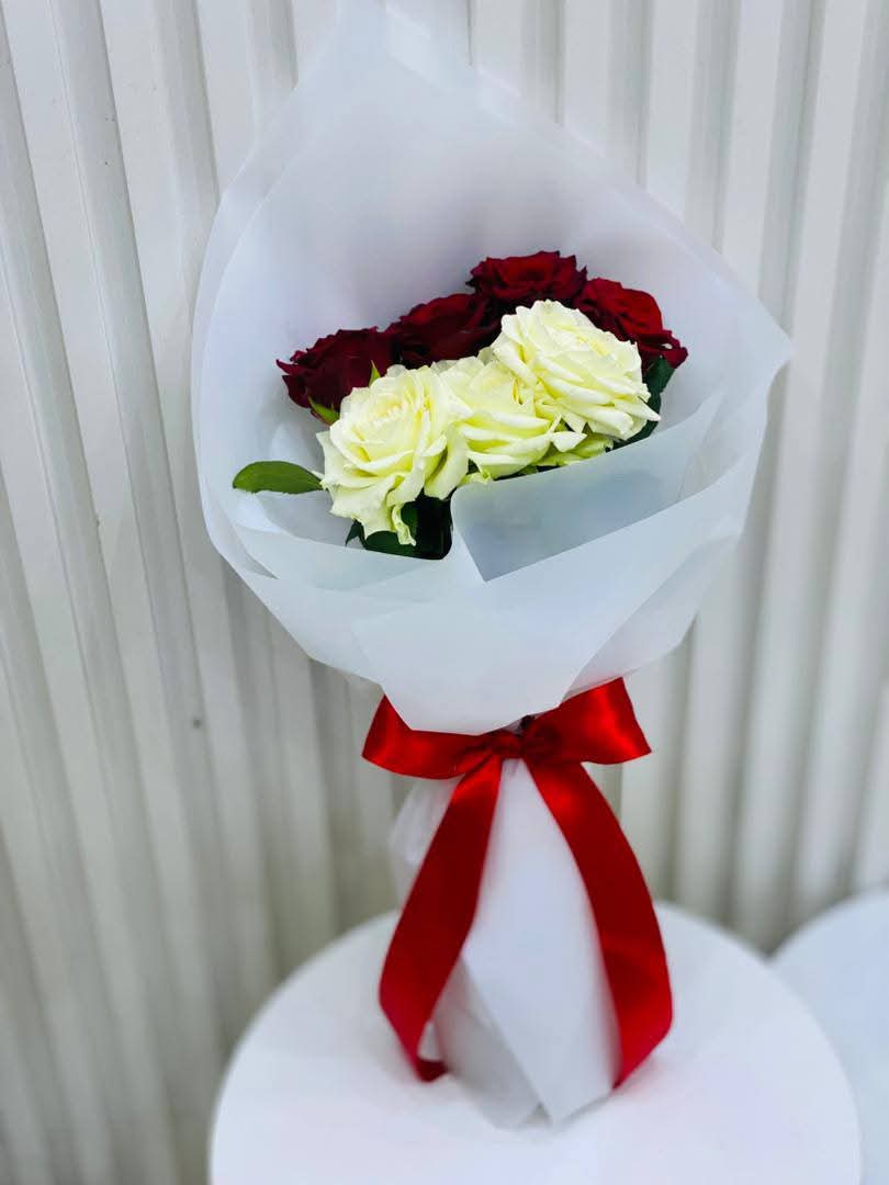 Un bouquet intemporel qui marie la passion du rouge à l’innocence du blanc. Idéal pour déclarer votre amour, célébrer une occasion spéciale ou simplement offrir un geste plein d’élégance.